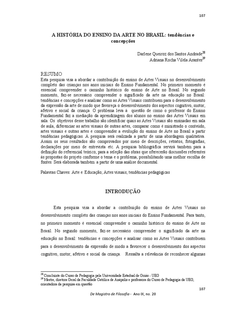 essencial compreender o caminho histórico do ensino de Arte no Brasil. No segundo