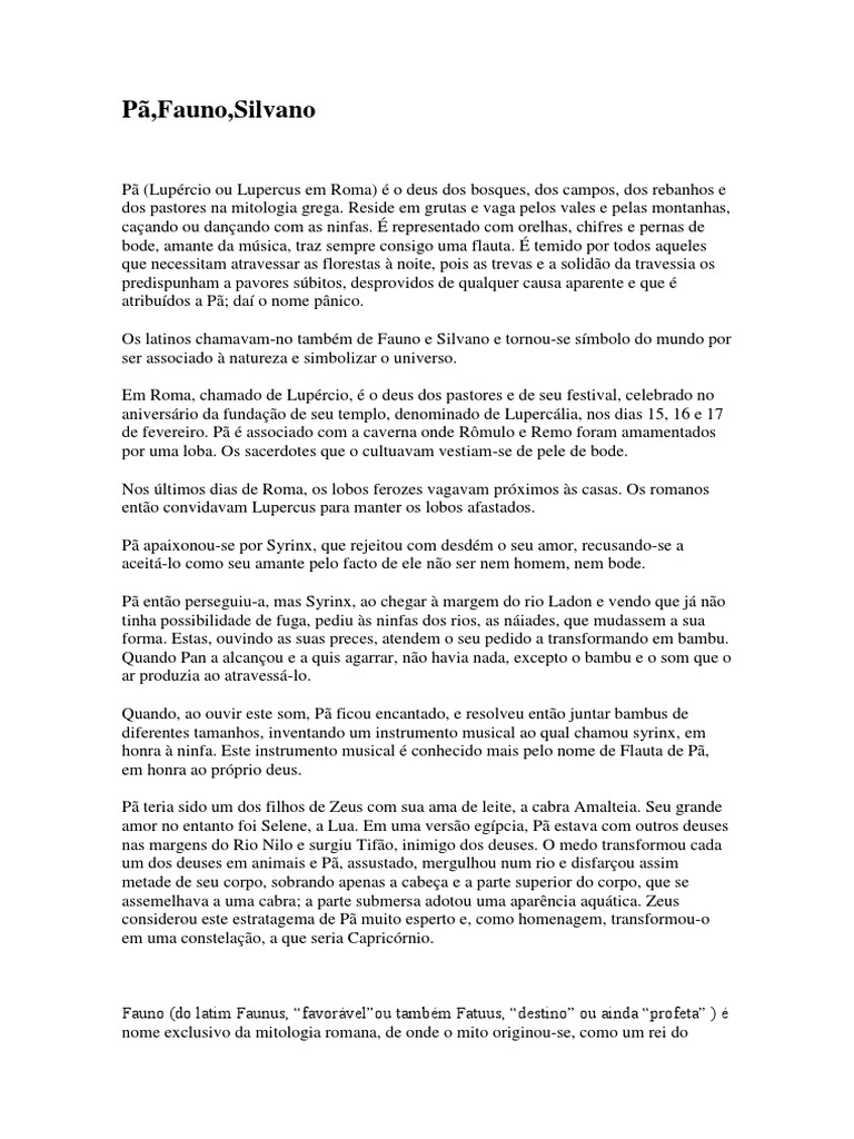 “selva” – donde vem-lhe o nome) que anterior a isto foi conhecido como o deus Fauno