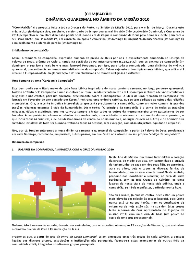 1. LUGARES DA COMPAIXÃO, A SINALIZAR COM A CRUZ DA MISSÃO 2010