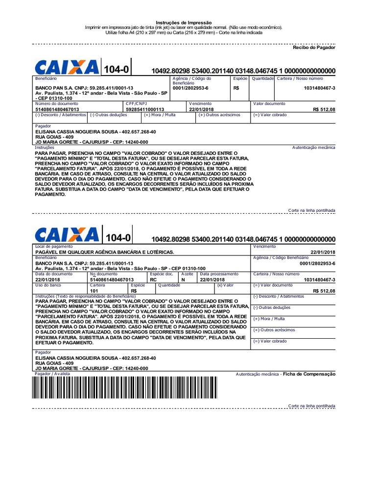 PAGÁVEL EM QUALQUER AGÊNCIA BANCÁRIA E LOTÉRICAS. 22/01/2018