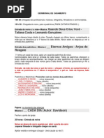 noivo, e este ultimo no lado direito. Caminham até a primeiro banco e cada um senta no seu lado respectivo.