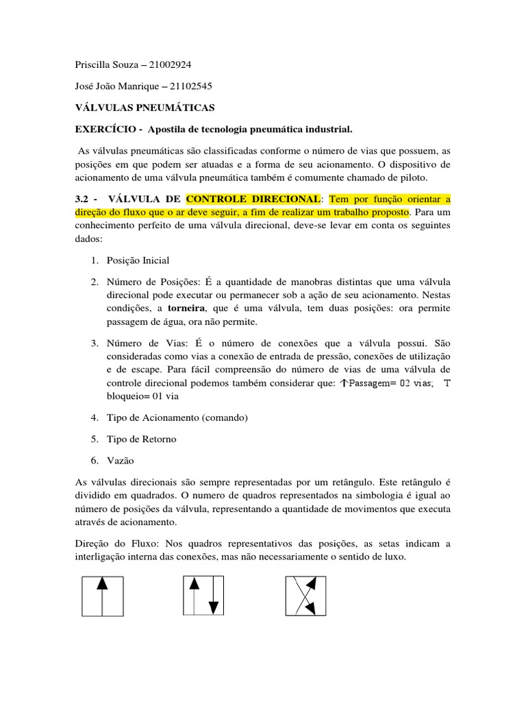 EXERCÍCIO - Apostila de tecnologia pneumática industrial.