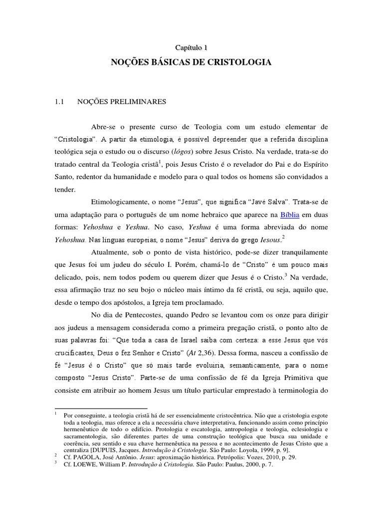 NOÇÕES BÁSICAS DE CRISTOLOGIA