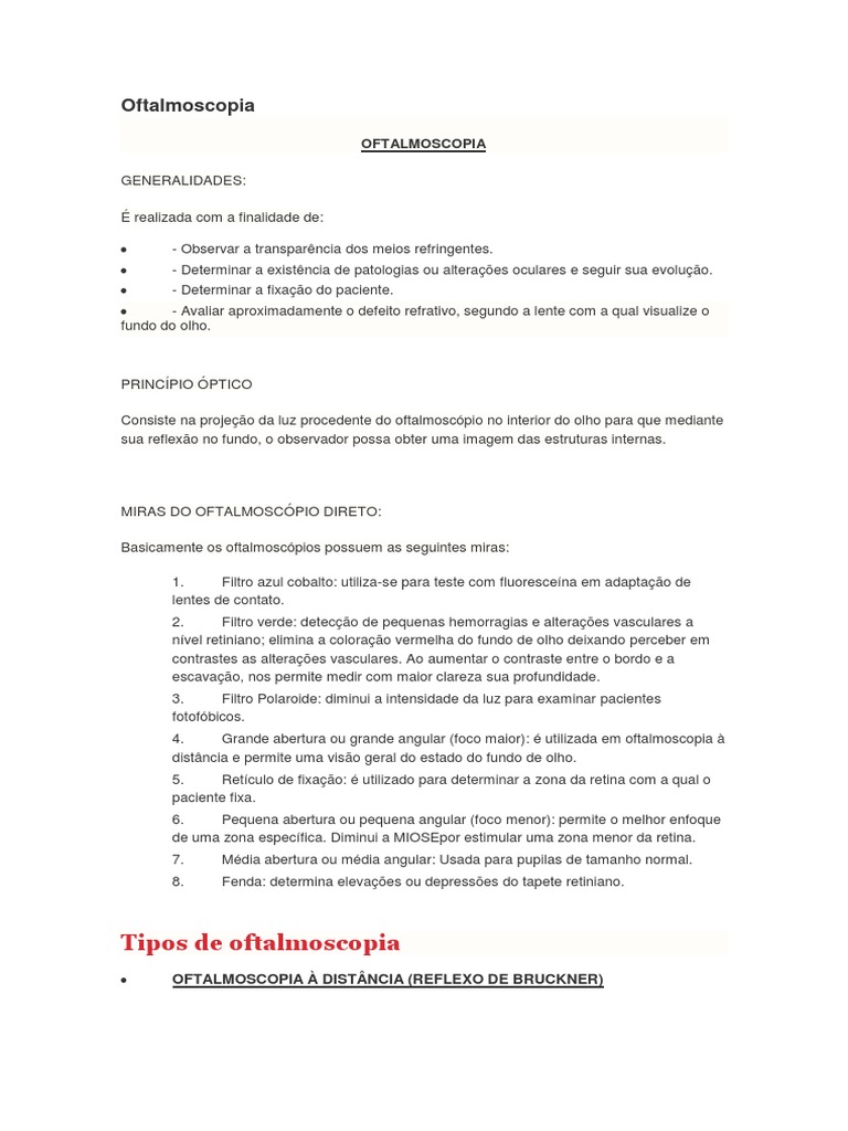 oculares antes de iniciar a oftalmoscopia propriamente dita.