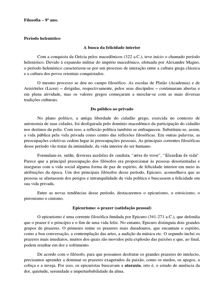 atribuições da época. Um dos principais filósofos desse período, Epicuro, aconselhava que as