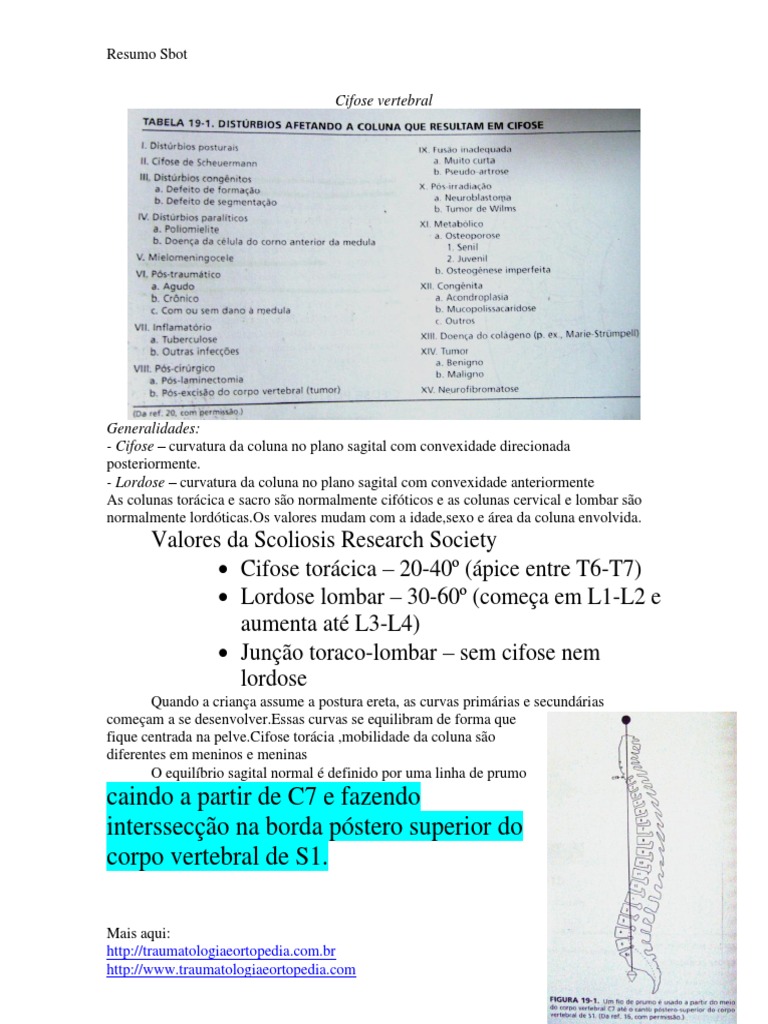 As colunas torácica e sacro são normalmente cifóticos e as colunas cervical e lombar são