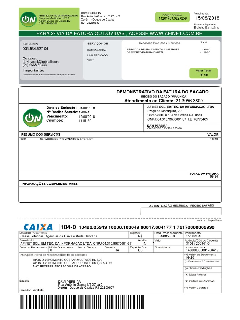 033.584.627-06 SERVICOS DE PROVIMENTO A INTERNET 139,90