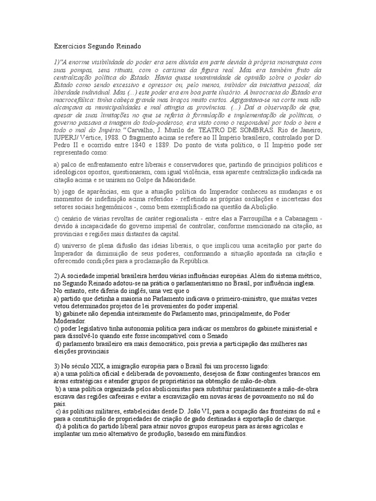 IUPERJ/ Vértice, 1988. O fragmento acima se refere ao II Império brasileiro, controlado por D.