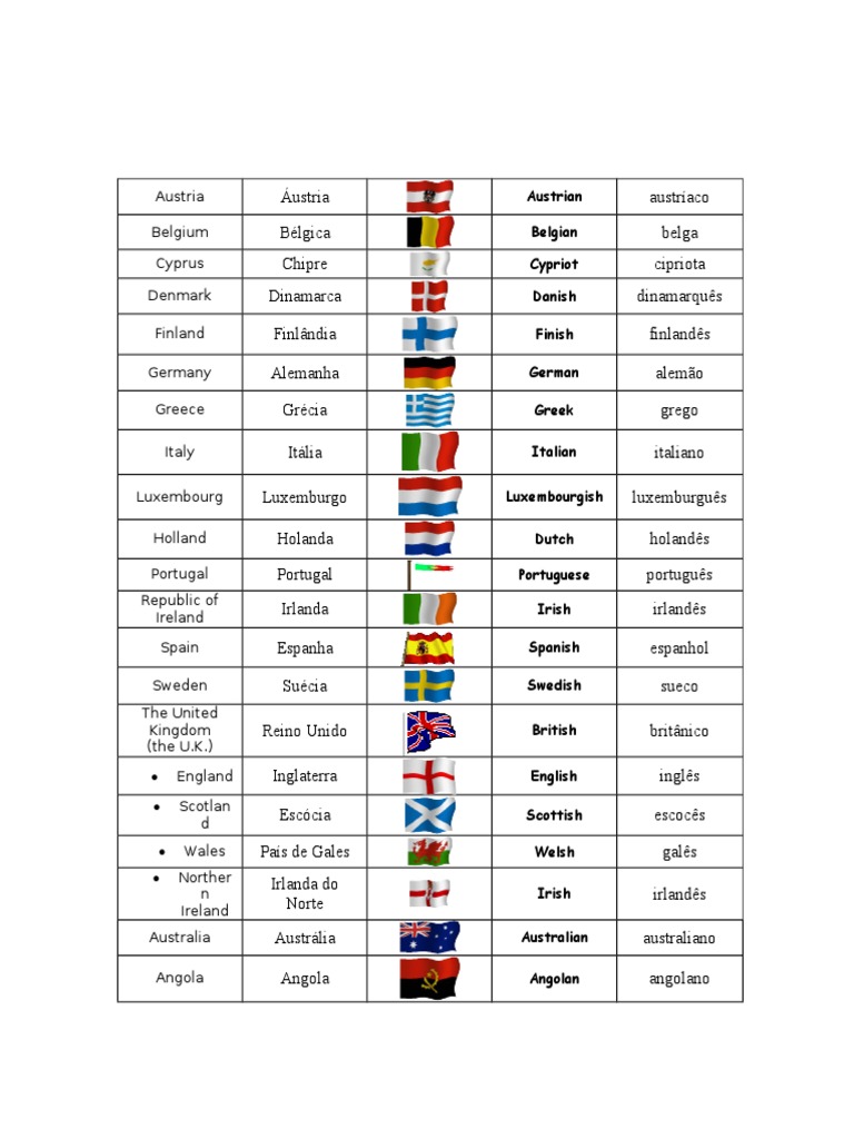 England Inglaterra English inglês