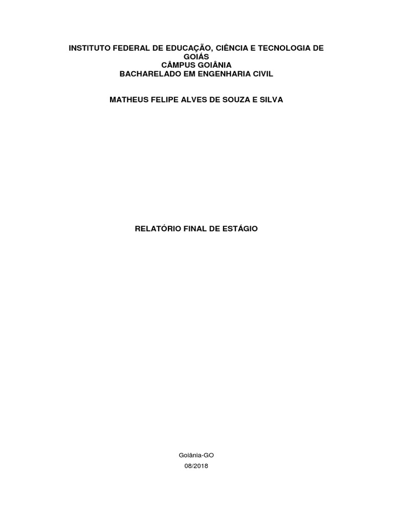 obrigatória dessa atividade exigida no curso de Bacharelado em Engenharia Civil. O estágio foi