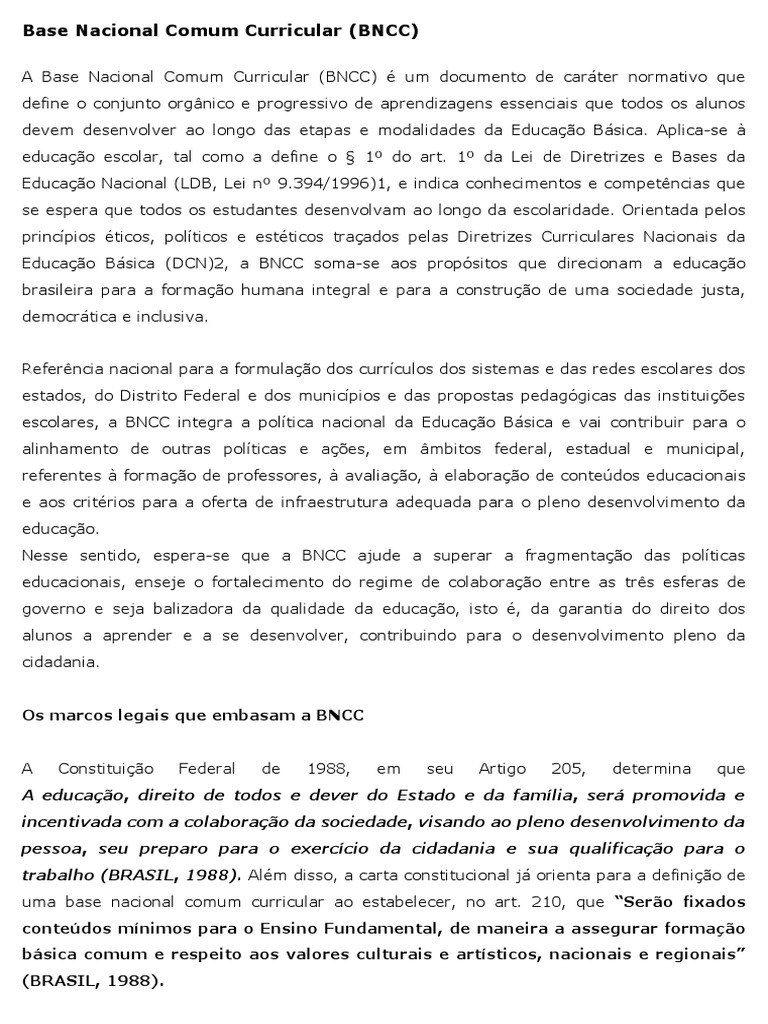 A Base Nacional Comum Curricular (BNCC) é um documento de caráter normativo que