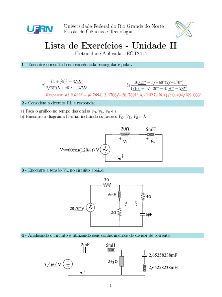 Resposta: a)VC = 11, 81 −174◦ ; VL = 16, 872 6◦ b)VC = 2, 61 −121, 8◦ ; VL = 3, 72 58, 069◦
