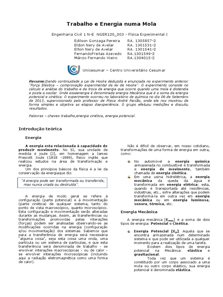 referencia para o experimento. W=20*(0.10)2 W= 0,1 joule [J]