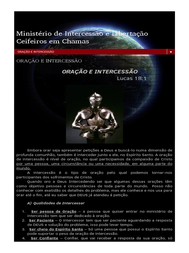 de intercessão é nível de oração, no qual participamos da compaixão de Cristo