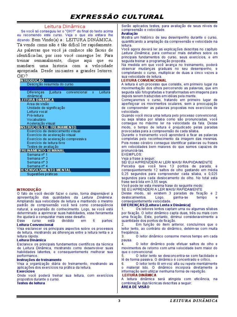 Leitura Dinâmica, para conhecer mais detalhes sobre os