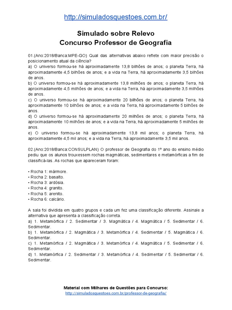 02.(Ano:2018/Banca:CONSULPLAN) O professor de Geografia do 1º ano do ensino médio