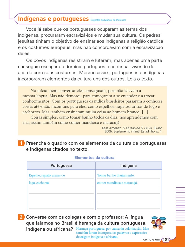 Indígenas e portugueses Sugestão no Manual do Professor.