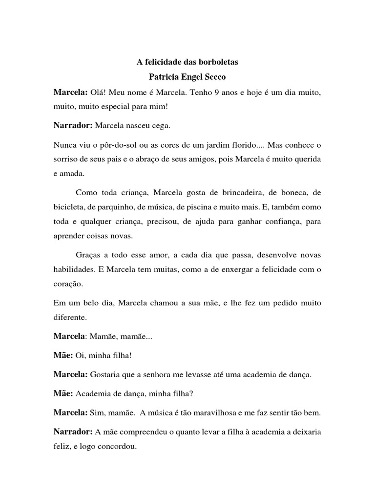 Narrador: Marcela nasceu cega.