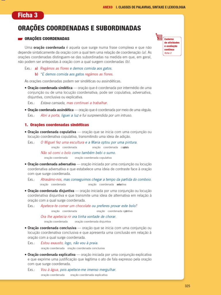 depende sintaticamente da oração com a qual tem uma relação de coordenação (a). As ficha 3