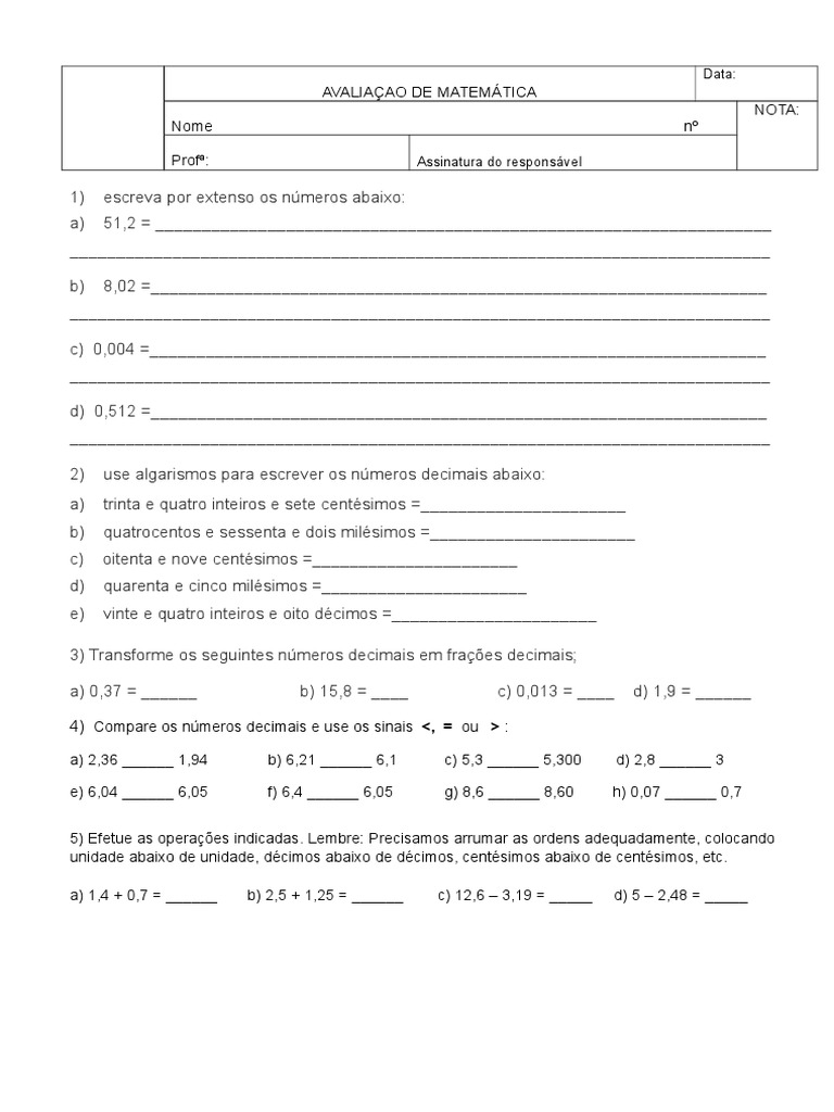 e) 6,04 ______ 6,05 f) 6,4 ______ 6,05 g) 8,6 ______ 8,60 h) 0,07 ______ 0,7