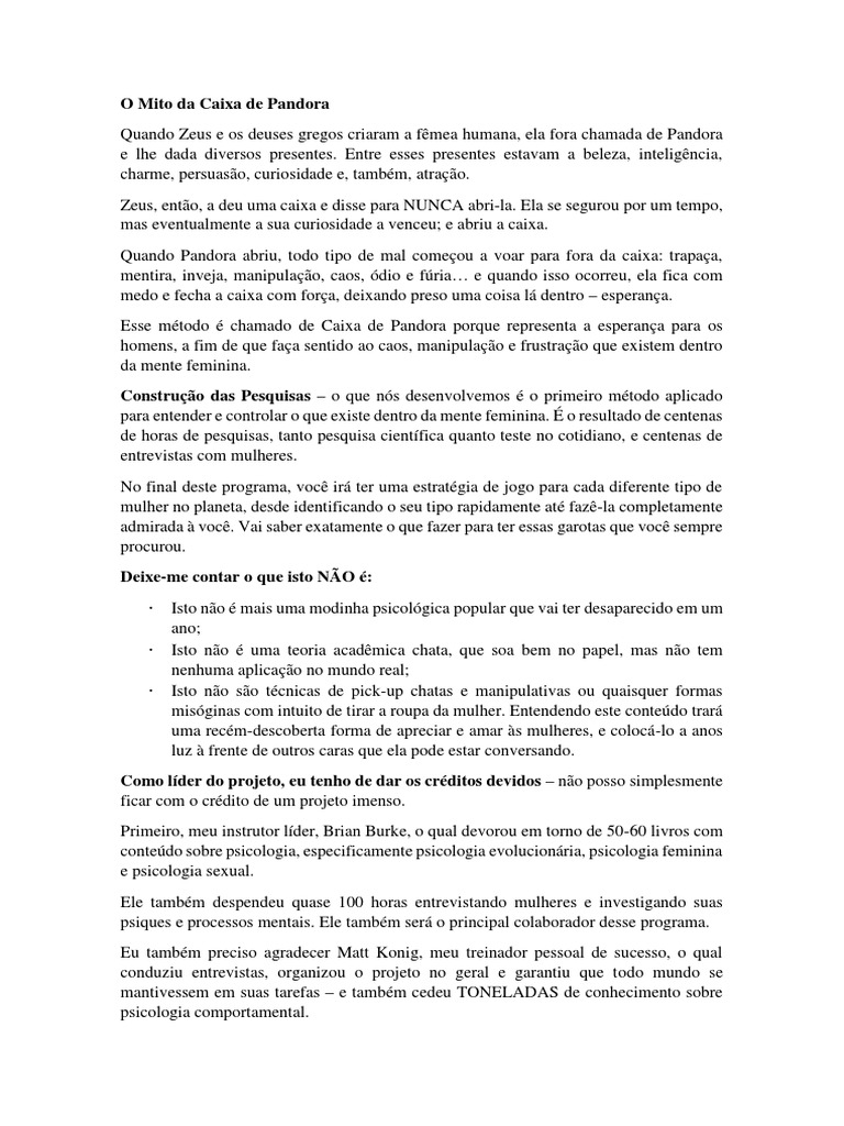 Quando Zeus e os deuses gregos criaram a fêmea humana, ela fora chamada de Pandora