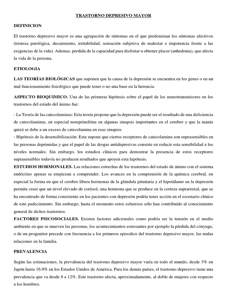 o de un progenitor precede con frecuencia a los primeros episodios del trastorno depresivo mayor, las malas