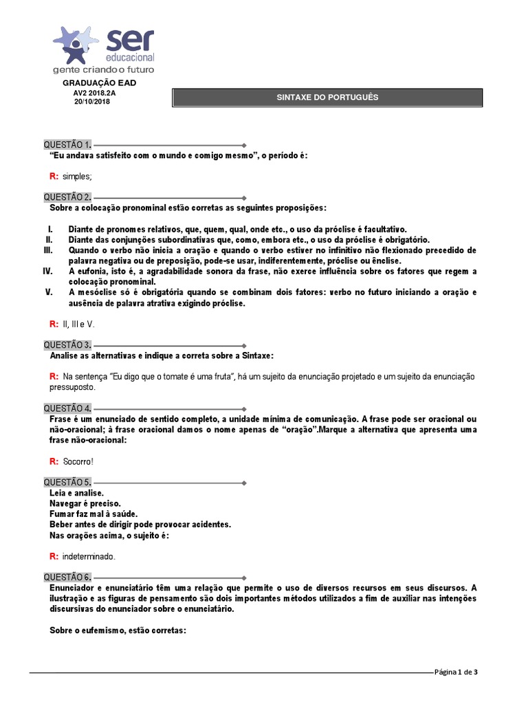 Analise as alternativas e indique a correta sobre a Sintaxe: