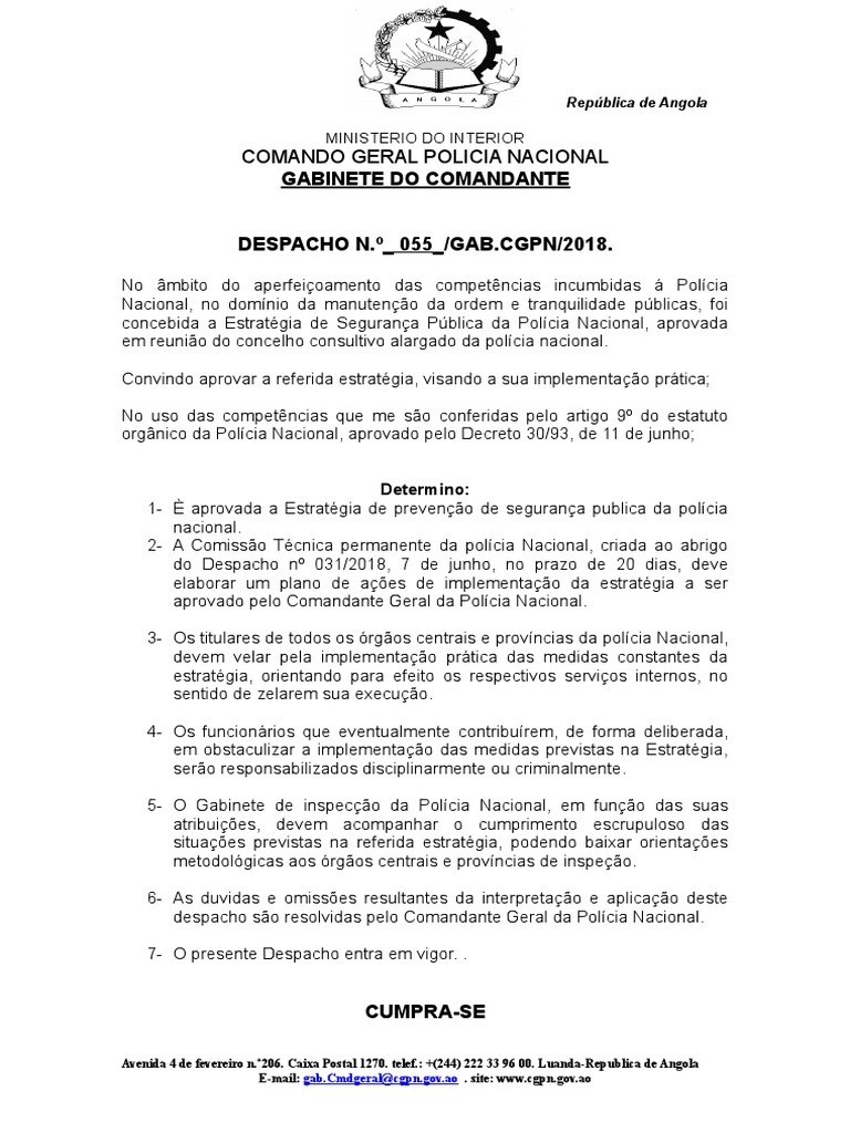 aprovado pelo Comandante Geral da Polícia Nacional.