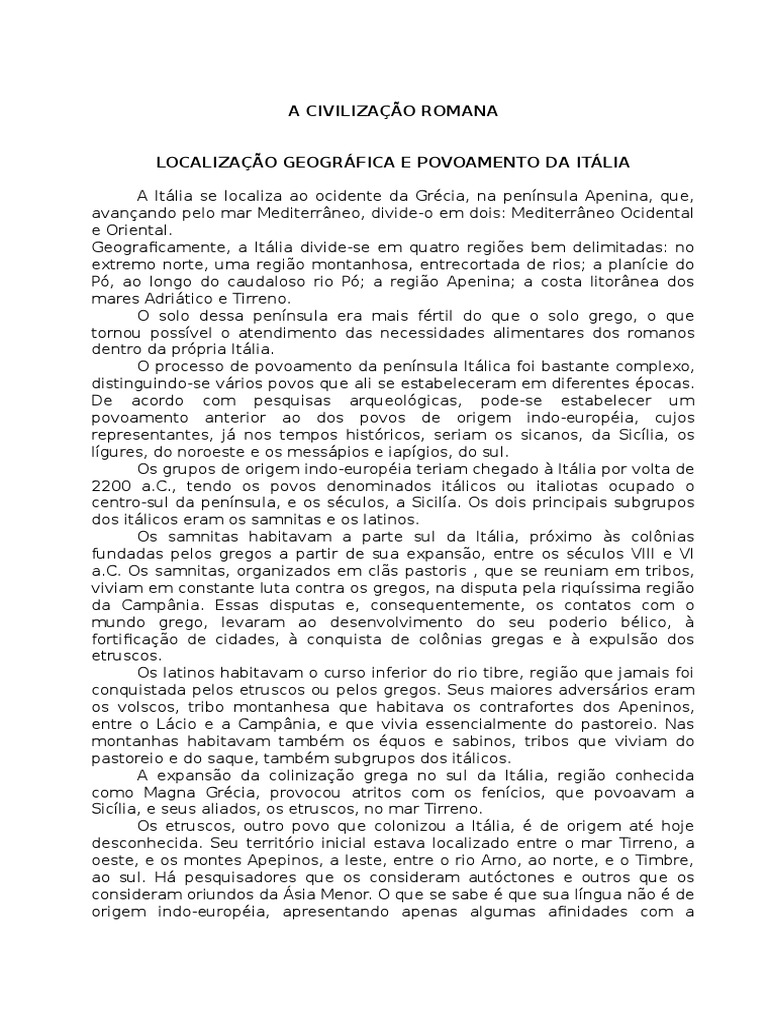 mesmo período. Os latinos, habitantes da primitiva Roma, eram basicamente