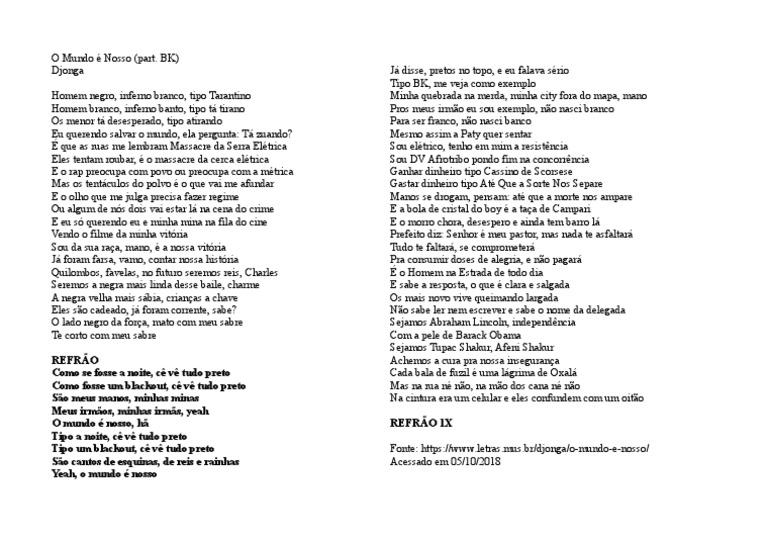 Tipo um blackout, cê vê tudo preto Fonte: https://www.letras.mus.br/djonga/o-mundo-e-nosso/