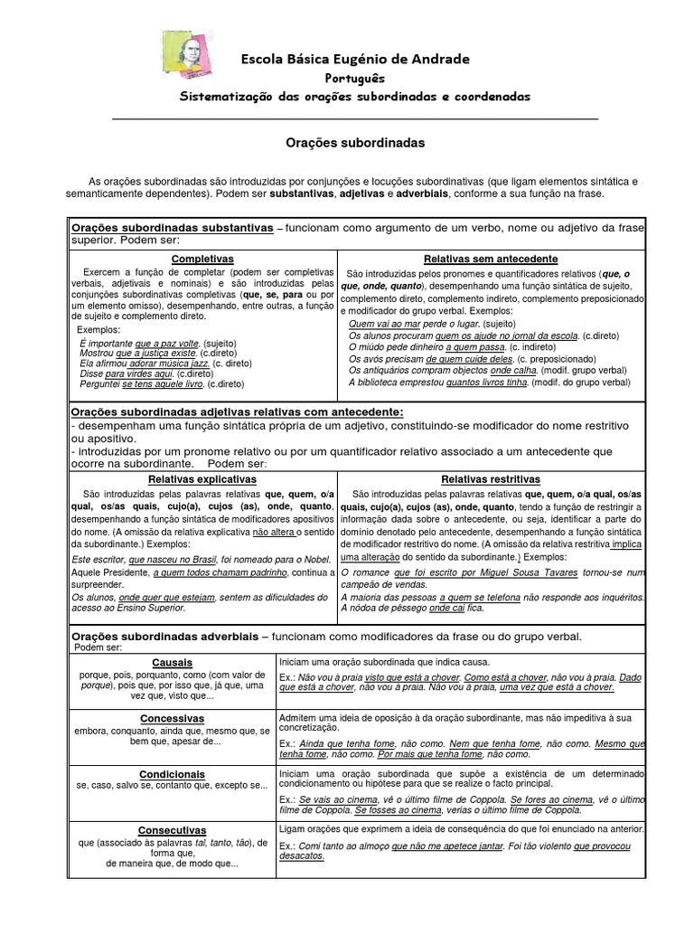 Sistematização das orações subordinadas e coordenadas