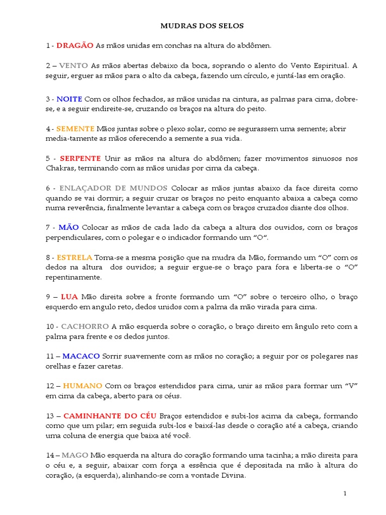 1 - DRAGÃO As mãos unidas em conchas na altura do abdômen.