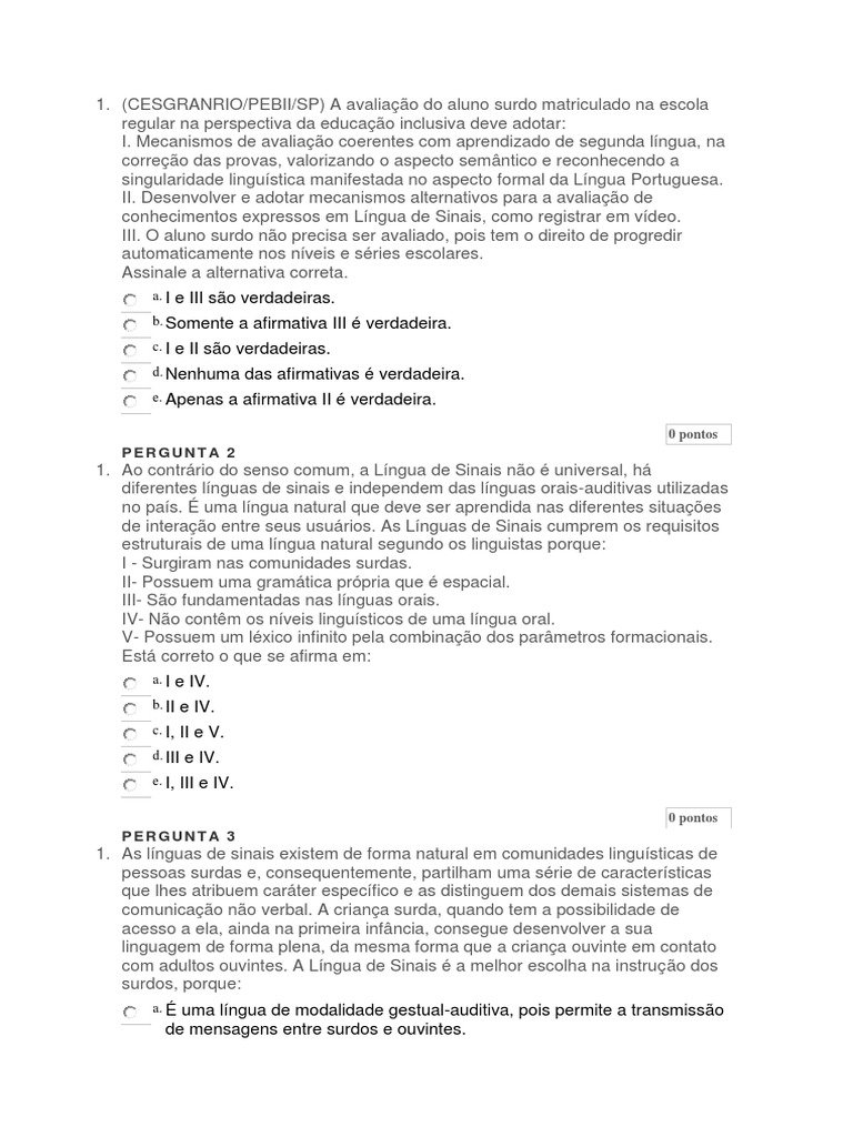(CESGRANRIO/PEBII/SP) A avaliação do aluno surdo matriculado na escola