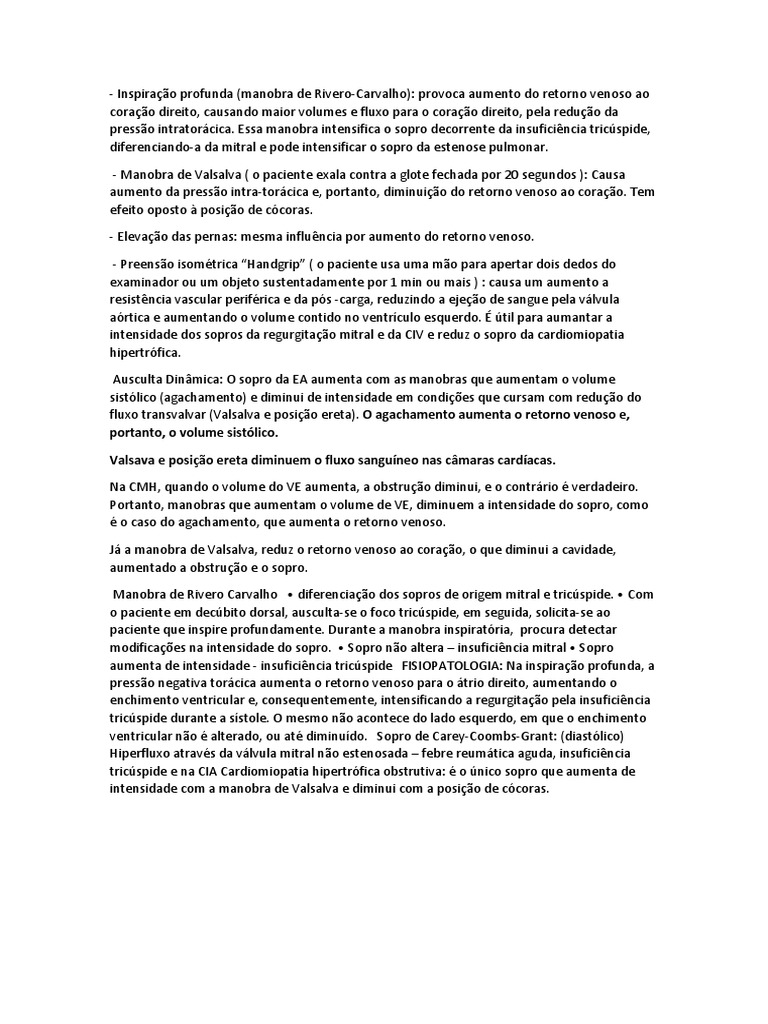 - Inspiração profunda (manobra de Rivero-Carvalho): provoca aumento do retorno venoso ao