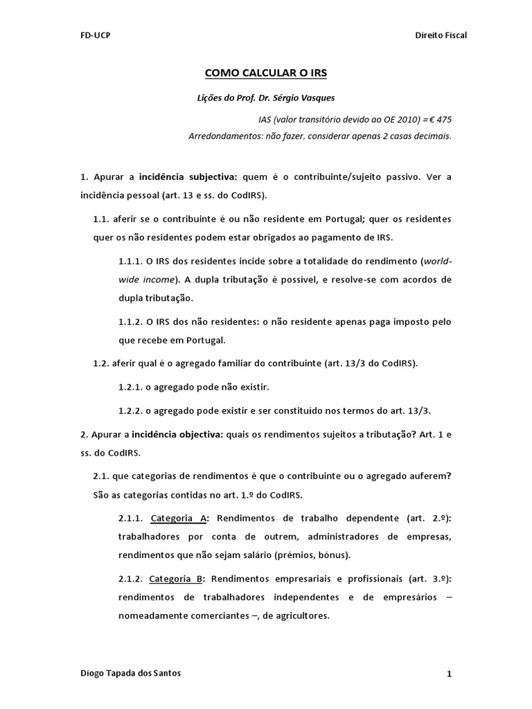 1. Apurar a incidência subjectiva: quem é o contribuinte/sujeito passivo. Ver a