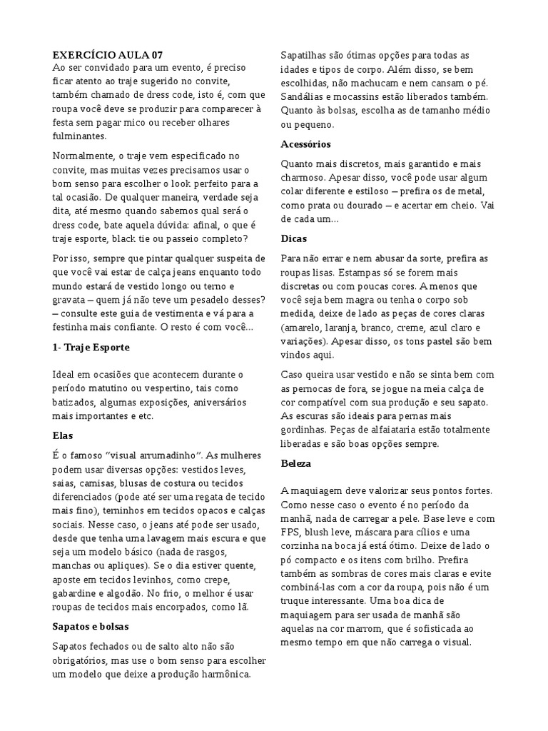 EXERCÍCIO AULA 07 Sapatilhas são ótimas opções para todas as