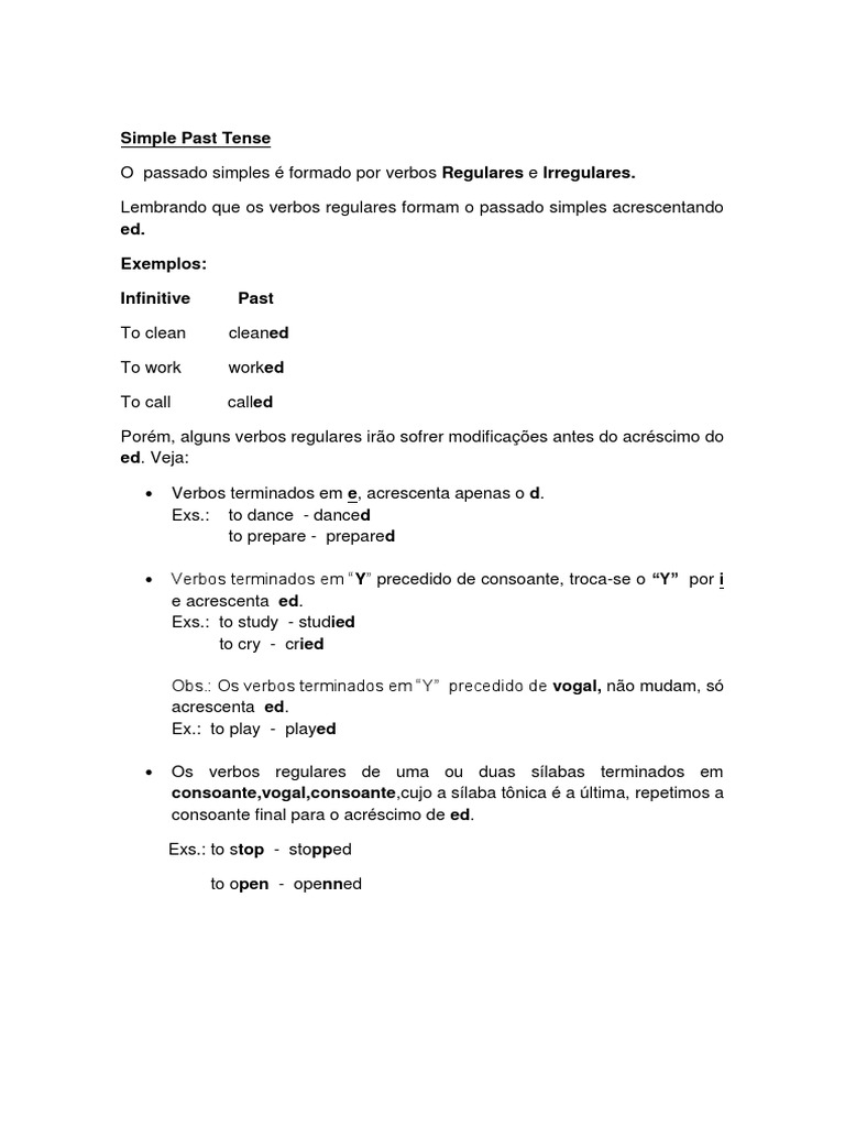 Lembrando que os verbos regulares formam o passado simples acrescentando