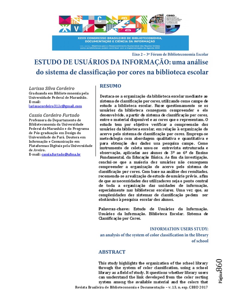 Revista Brasileira de Biblioteconomia e Documentação – v. 13, n. esp. CBBD 2017