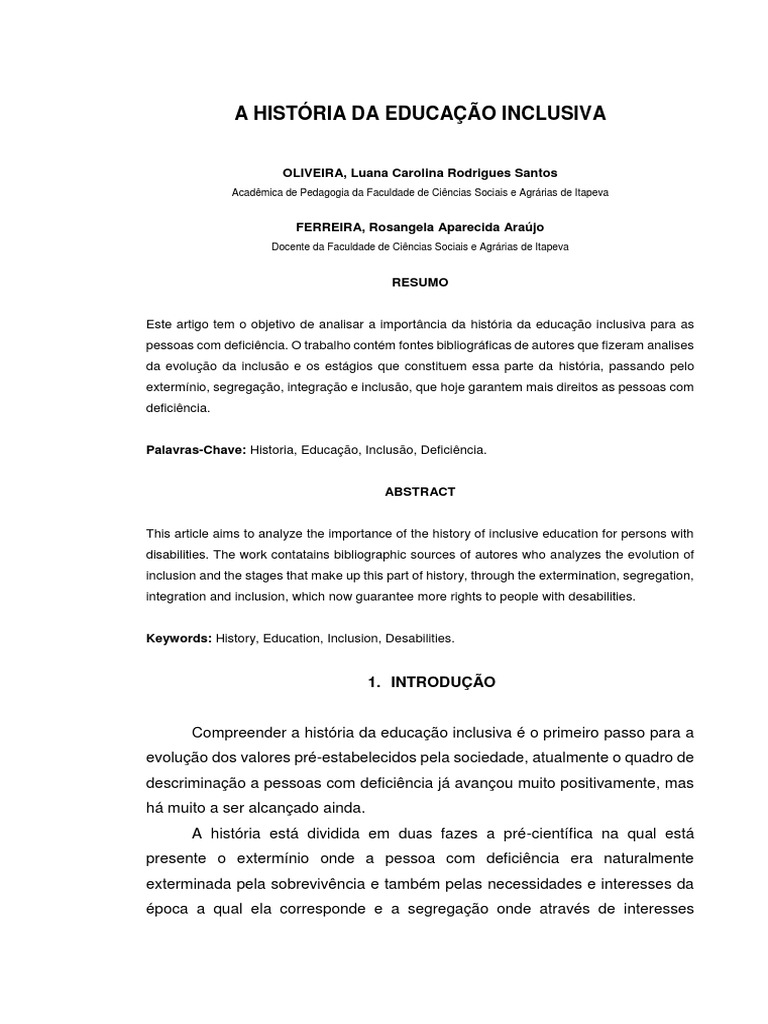 Palavras-Chave: Historia, Educação, Inclusão, Deficiência.