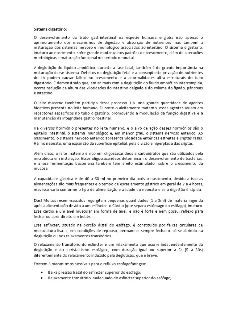 O sistema digestório do recém-nascido passa por adequações que incluem modificações