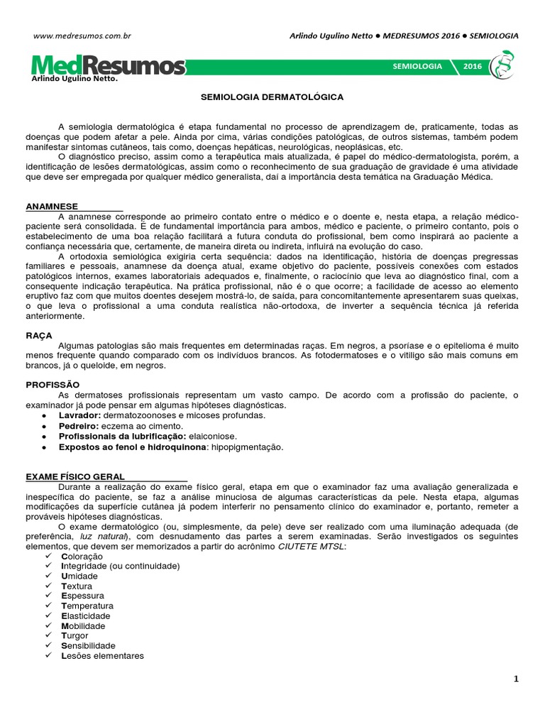www.medresumos.com.br Arlindo Ugulino Netto ● MEDRESUMOS 2016 ● SEMIOLOGIA