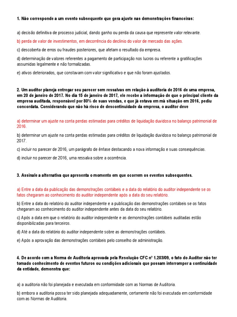 2. Um auditor planeja entregar seu parecer sem ressalvas em relação à auditoria de 2016 de uma empresa,