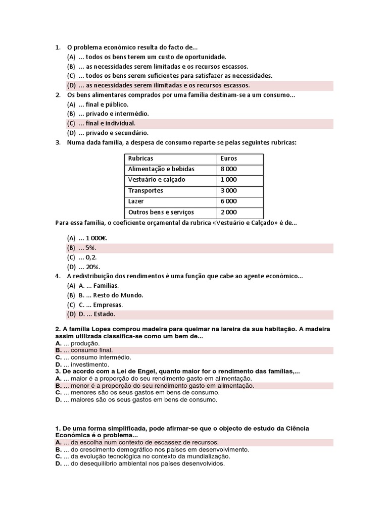 1. A Ciência Económica está intimamente relacionada com a questão da escassez, na medida