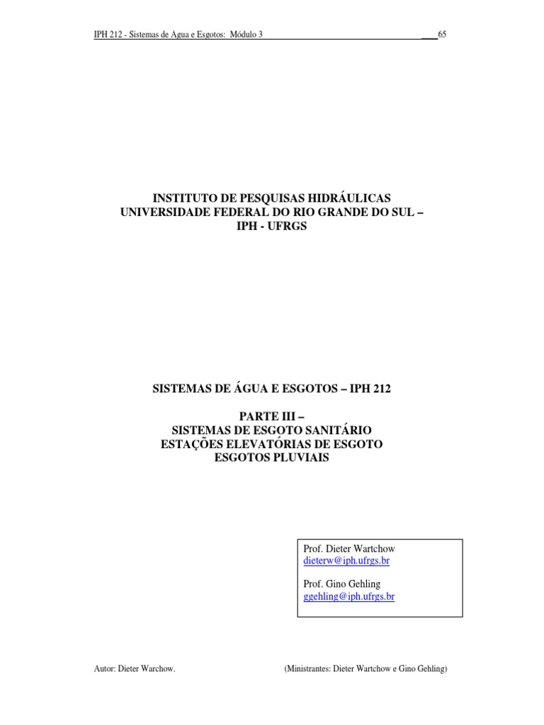 IPH 212 - Sistemas de Água e Esgotos: Módulo 3