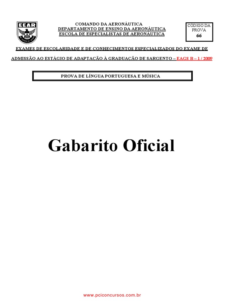 Gabarito Oficial EAGS B 2009: Língua Portuguesa