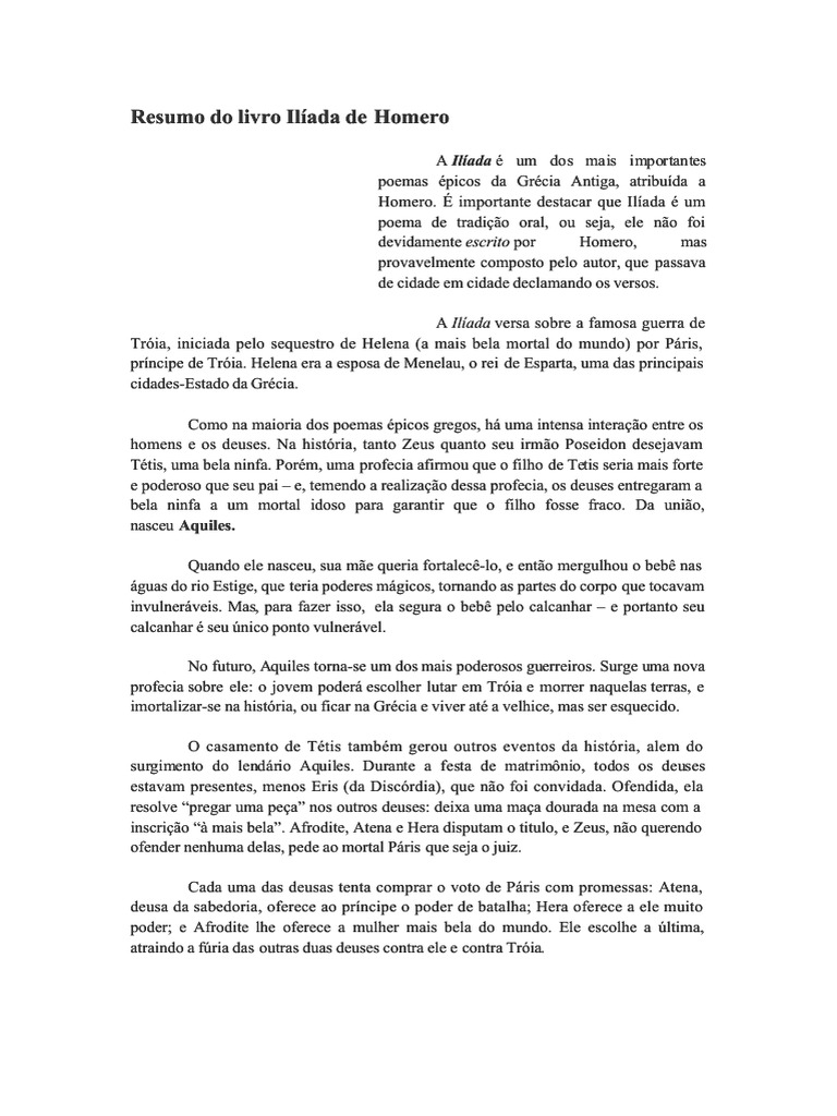 Homero. É importante destacar que Ilíada é um
