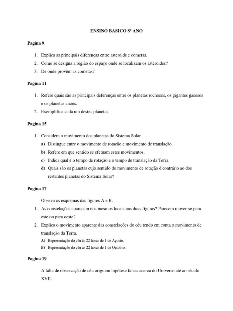 1. Explica as principais diferenças entre asteroids e cometas.
