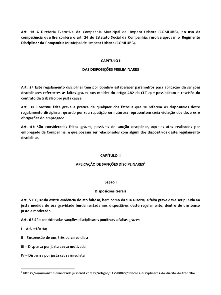 Art. 2º Este regulamento disciplinar tem por objetivo estabelecer parâmetros para aplicação de sanções