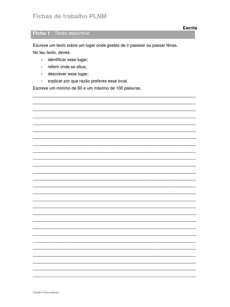 Escreve um texto, com um mínimo de 60 e um máximo de 100 palavras, em que