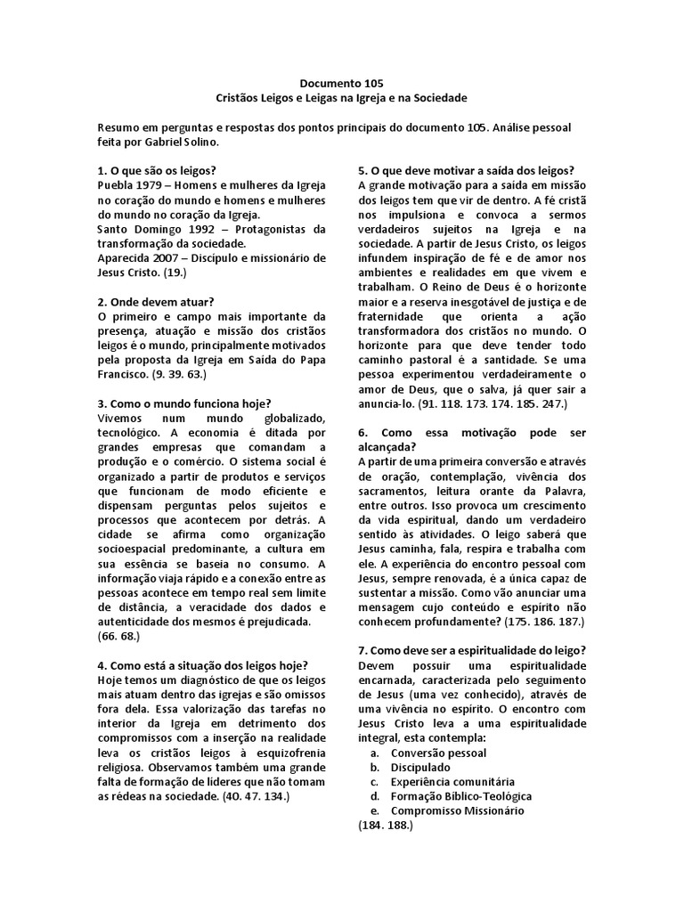 Resumo em perguntas e respostas dos pontos principais do documento 105. Análise pessoal